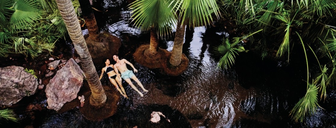 Whether you stay in El Questro’s acclaimed luxury homestead or book a tent at one of its many private campsites across the 280,000-hectare wilderness park in the spectacular East Kimberley region, one highlight of your stay will be a visit to the property’s Zebedee Springs.