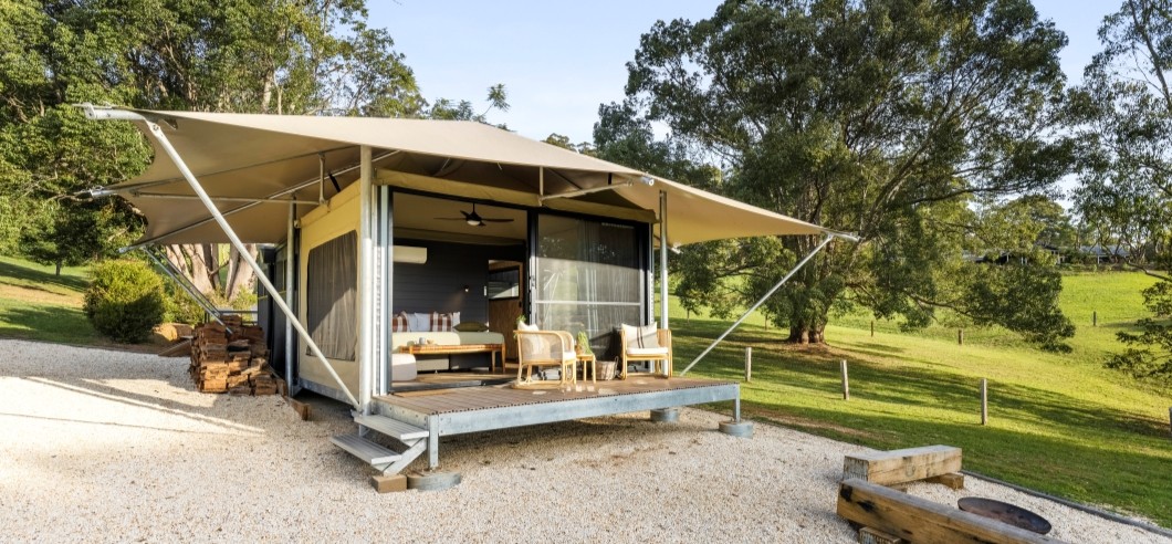 Tucked between lush rainforest and rolling hills in the Coffs Hinterland, The Lodge Bellingen invites you to slow down and savour the simple pleasures with this Glamping Getaway experience. Unplug under the stars and let nature set the pace with a soul-nourishing two-night escape in a spacious glamping tent.