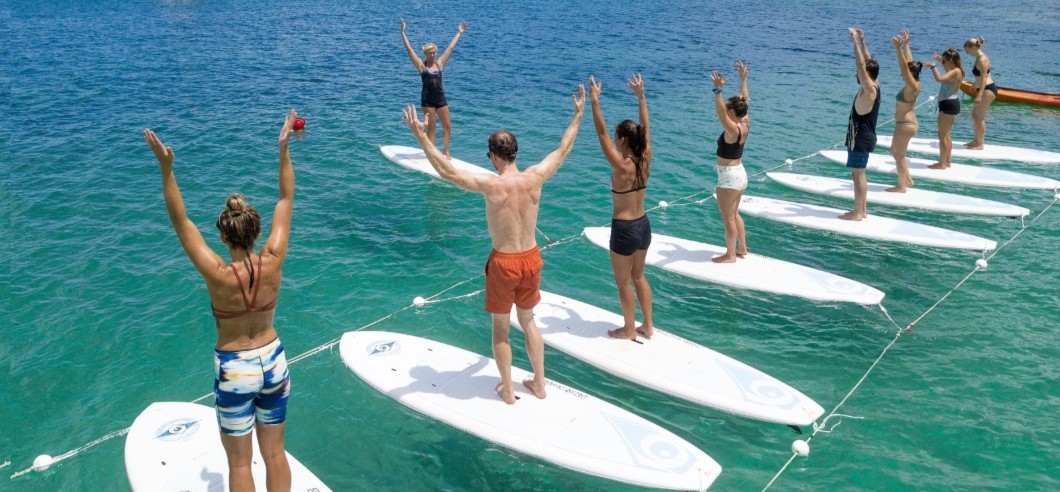 • Floating yoga practice on the SUP board.